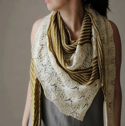 Для этой шали использовалась красивая пряжа Shibui Knits Lunar, представляющая собой облачную смесь шёлка и мериносовой шерсти.